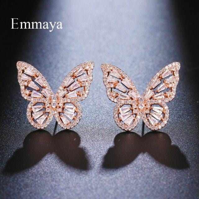 Emmaya Charming Butterfly Shape Earring For Women And Girls Hollow Out Style Noble Zirconia Jewelry Party Fashion Ornament