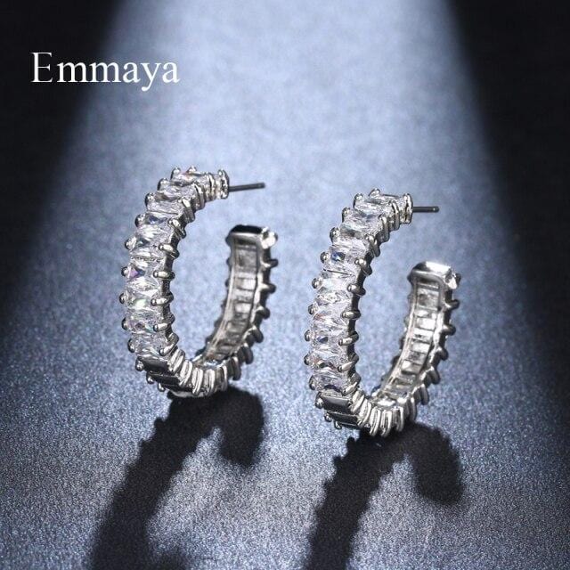 Emmaya Elegant Ornament For Female Fashion Design Silver Plated Stud Earring With Different Zirconia Geomery Shape Cool Gift