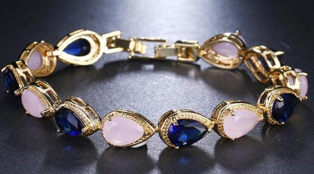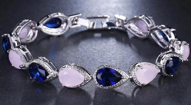 Emmaya Fashion Charm Pink and Blue Zircon Bangle Chains Crystal Bracelets For Women Female Jewelry Gift Wedding