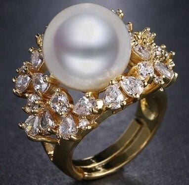 Emmaya Fashion New Trendy Women Finger Big Pearl Ring Real White/Gold Color Crystal Rings For Women Wedding Party