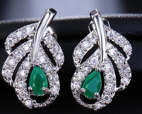 EMMAYA Fashion Women Girl Leaf Shape Crystal Metal Zircon Ear Stud Earrings Patry Earring Jewelry Gift