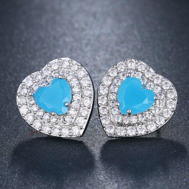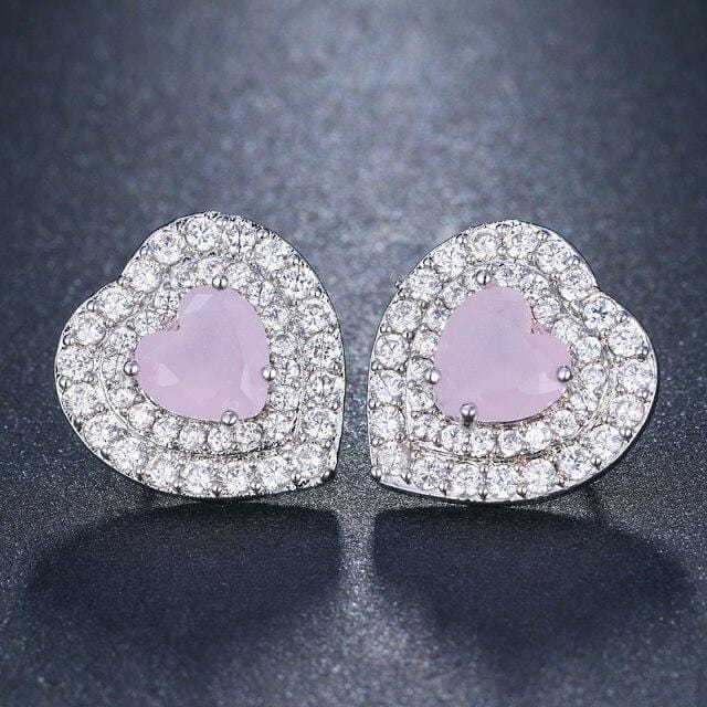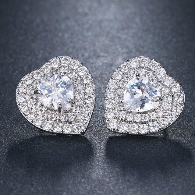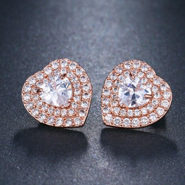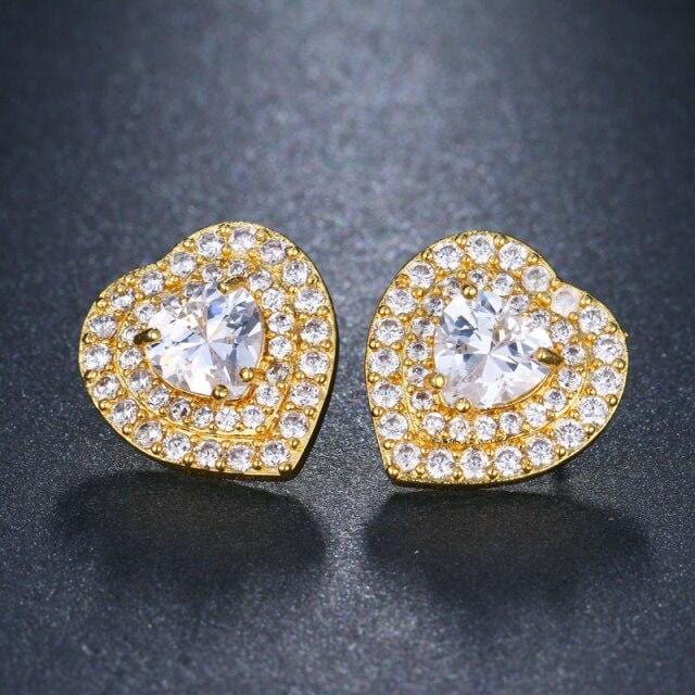 EMMAYA Gold Color Heart Earrings Women Paved CZ Crystal Stud Earrings for Wedding Party Heart Cubic Zirconia Ear Stud