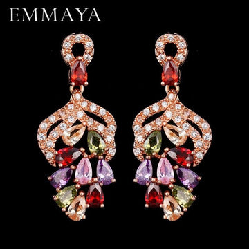 EMMAYA Luxury AAA CZ Jewelry Hanging Drop Multicolor Cz Stone Evening Party Brilliant Earrings For Women