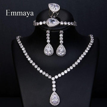 Emmaya Luxury Big Silver Color Dazzling Cubic Zircon Bridal Wedding Jewelry Set 4 Pieces Necklace Bracelet Ring For Indian Women