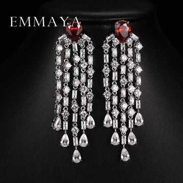 Emmaya Luxury Red Green Clear Blue Long Earrings For Women Wedding Party Drop AAA Shiny Cubic Zirconia Tassel Dangle Jewelry