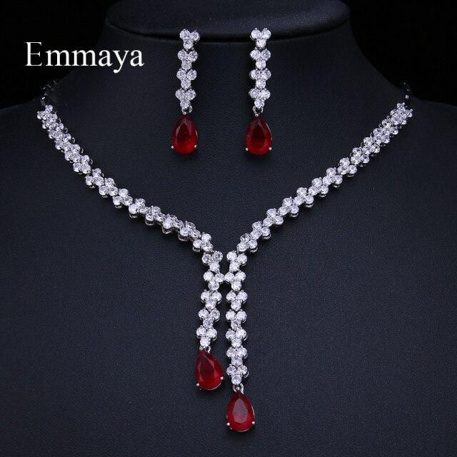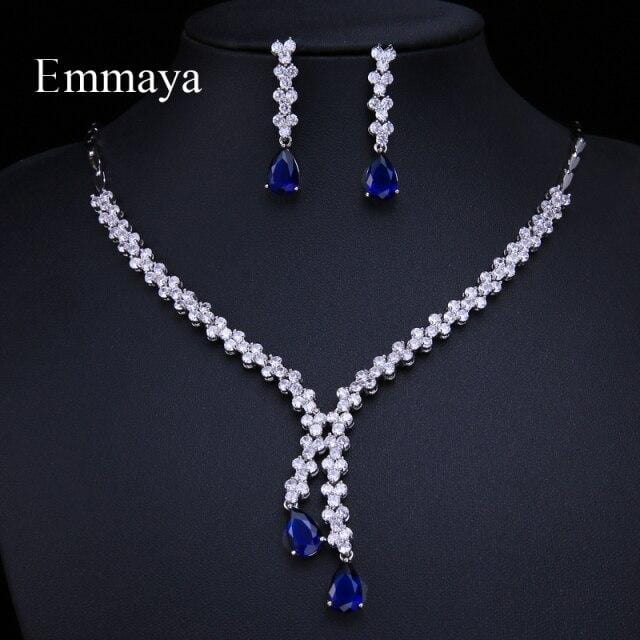Emmaya New Arrival Luxury Sparking Brilliant CZ Muliticolor Necklace Earrings Wedding Bridal Jewelry Sets Dress Accessories