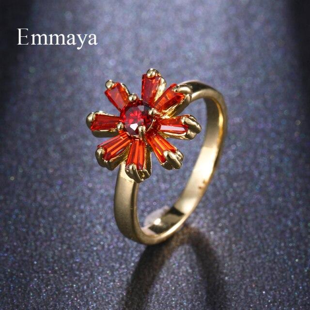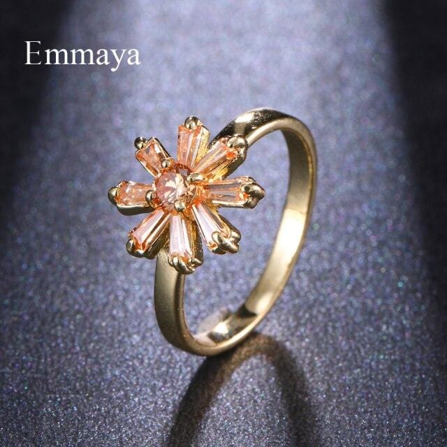 Emmaya New Arrival Simple Style Blooming Flower Appearance Delicate Ring Three Color Cubic Zircon Charming Women Gift In Banquet