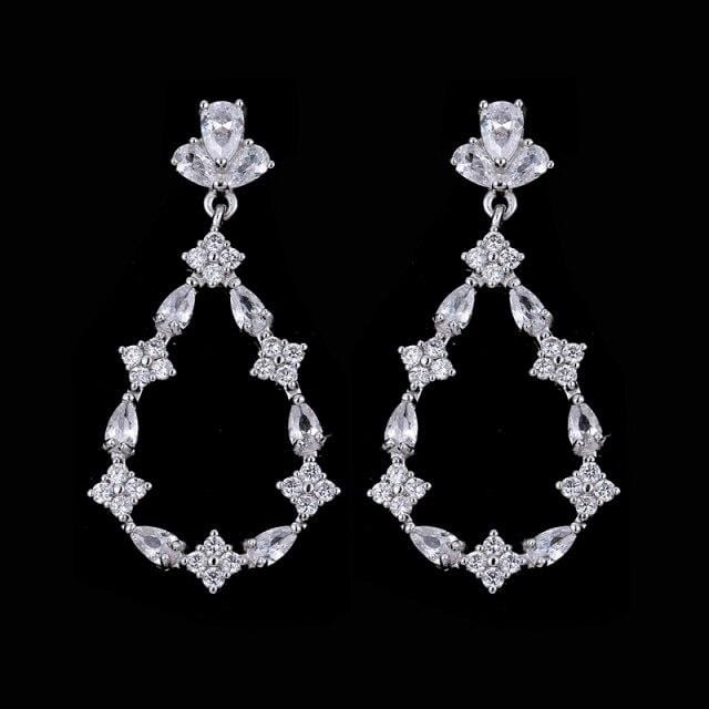 EMMAYA New Fashion Exquisite Design Beautiful Sweet CZ Crystal Water Drop Shape Women Charm Earrings Silver-Color Jewelry