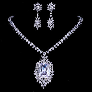 Emmaya Noble Jewelry Set Square Shape Cubic Zircon Necklace And Earring Exquisite Ornament Fashion Decoration Women Fancy Gift