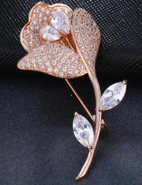 Emmaya Rose Flower White gold/Rose Gold Cubic Zircon Brooch for Women Wedding