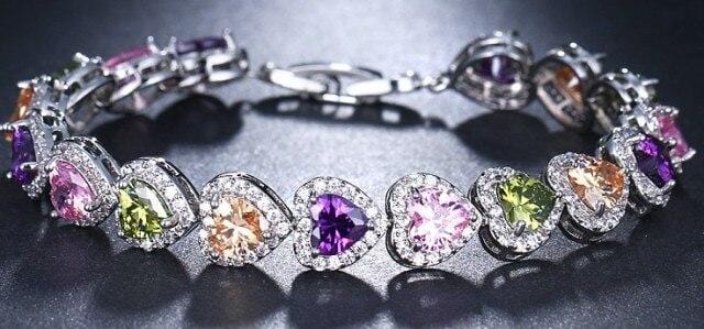 EMMAYA Valentine's Gift Shiny Multicolored CZ Zircon Crystal Heart Shaped Woman Girl Bracelet Jewelry