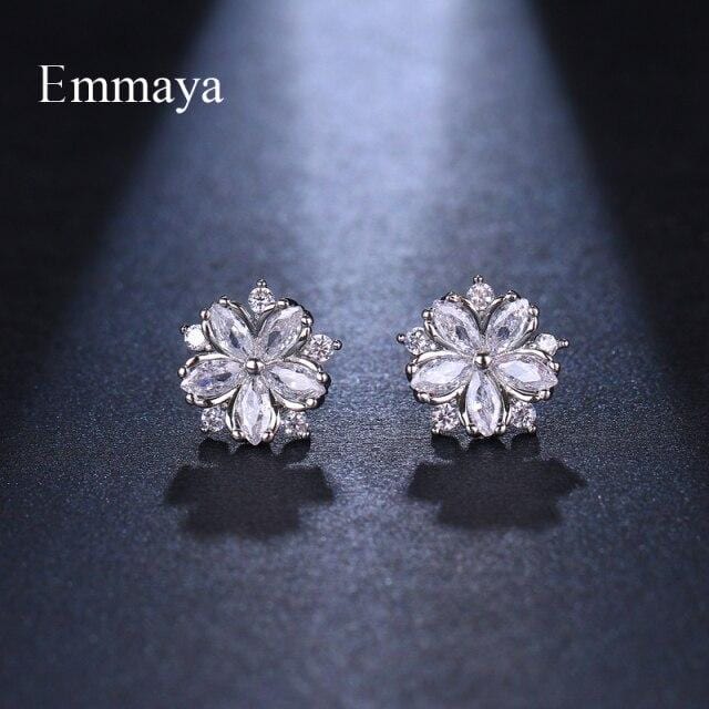 EMMAYA Women New Delicate Pendant With Double Flower Shape Cubic Zircon Stud Earring In Bridal Wedding Party Charming Gifts