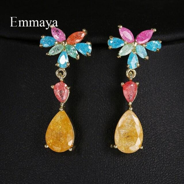 Emmaya Women New Outdoor Activities Choice Tropical Style Dazzling Earring Energetic Muliticolor Cubic Zircon Waterdrop Shape