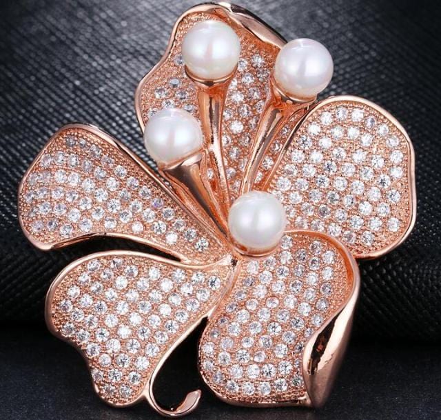 EmmayaClassic Handmade Flower White gold/Rose Gold Cubic Zircon Brooch for Women Wedding Gift