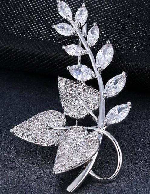 EmmayaLeaf Shape Luxury Handmade White gold/Rose Gold Jewelry AAA Cubic Zircon Brooch for Women Wedding