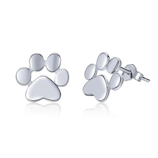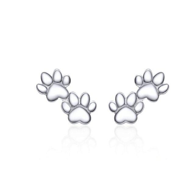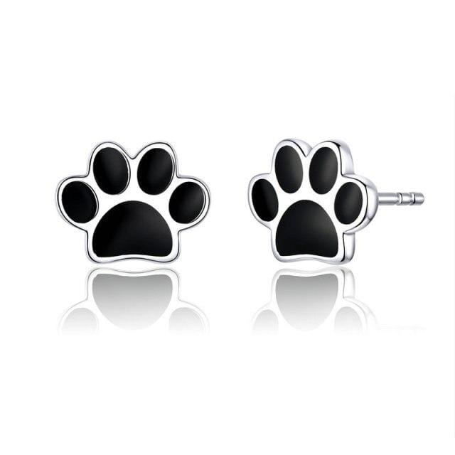 BAMOER 925 Sterling Silver Animal Dog Cat Paw Stud Earrings for Women Footprints Valentine's Day Gift