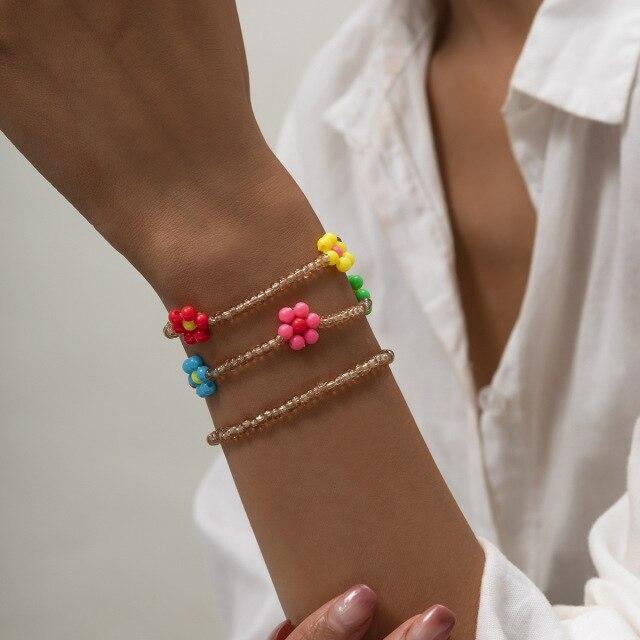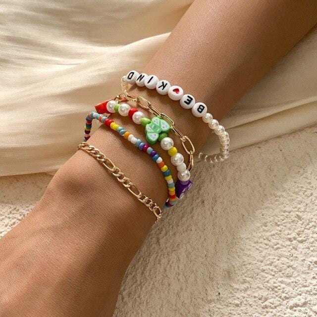 Bohemian Handmade Colorful Seed Beaded Bracelets for Women Trendy Multilayer Pearl Beads Letter Chain Bracelet Female Jewelry
