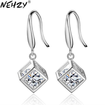 Brand Cube wild tassel Drop Earrings window in love earrings female models fashion silver jewelry luxury crystal ornaments