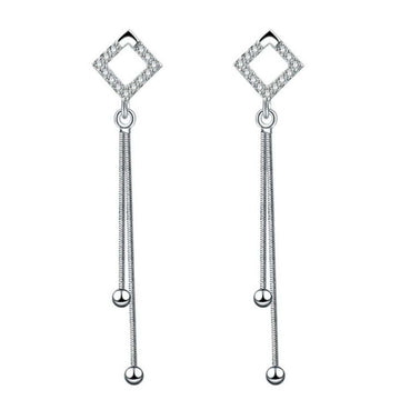 Brand ladies silver jewelry simple hollow shaped long earrings tassel geometric crystal silver Drop Earrings 67MM