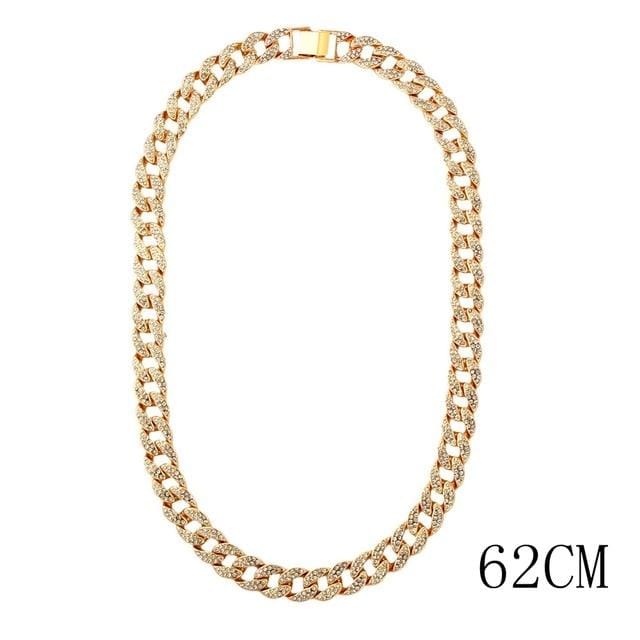 Caraquet Punk Hip Hop Cuban Link Chain Choker Necklace Iced Out Rapper Crystal Necklace Fashion Bling Rhinestone Jewelry Gift