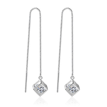 Ladies box earrings long section tassel zircon cubes simple Drop Earrings fashion simple twist brand silver jewelry 105MM