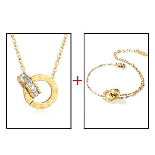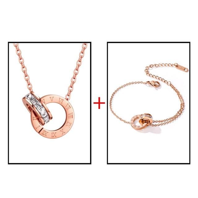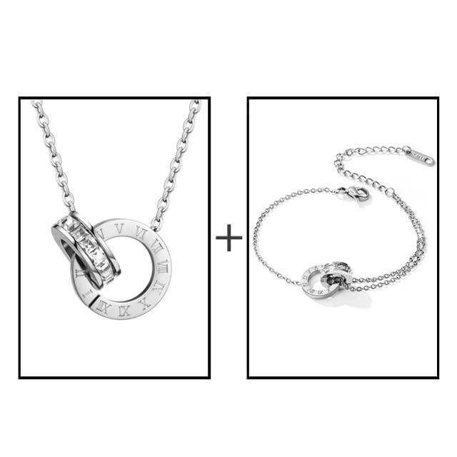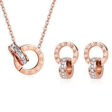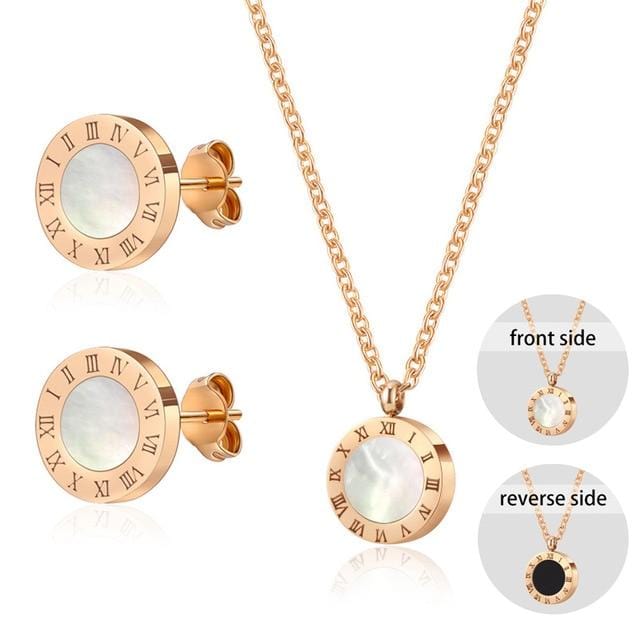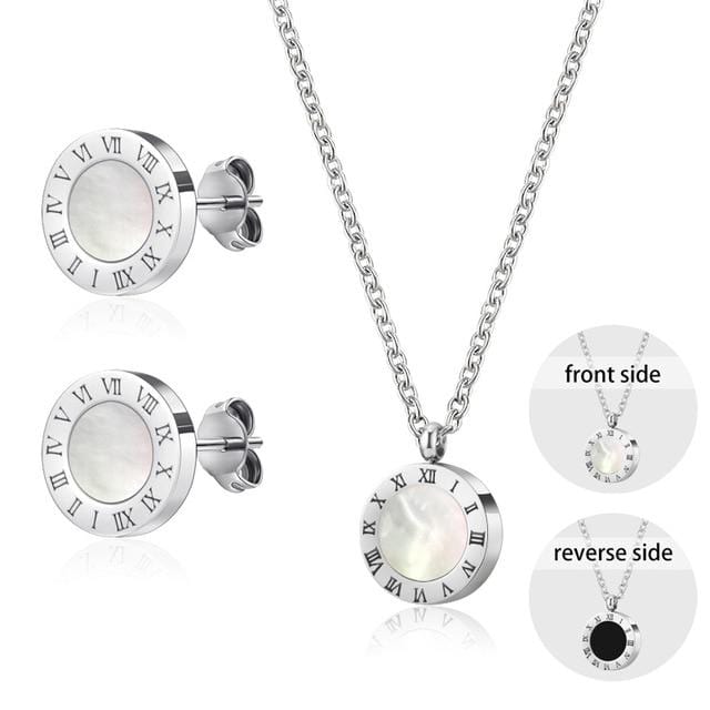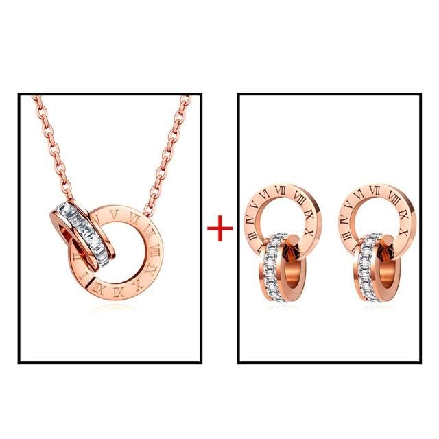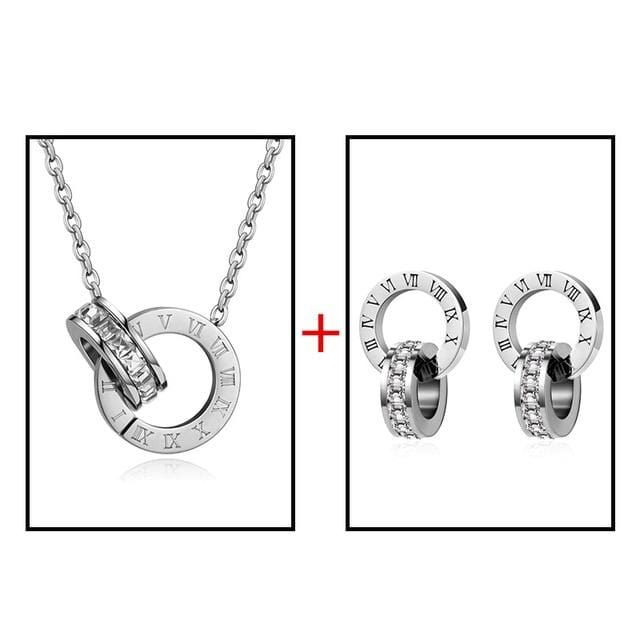 Luxury Elegant Roman Numeral Crystal Necklace Earrings Set For Women Fashion Stainless Steel Earrings 2020 Trend Wedding Jewelry