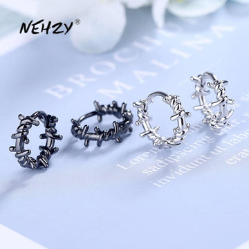NEHZY 925 Sterling Silver New Woman Fashion Jewelry High Quality Black Thai Silver Round Earrings Simple Retro Earrings