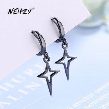 NEHZY 925 Sterling Silver New Woman Fashion Jewelry High Quality Black Thai Silver Star Simple Retro Long Tassel Earrings