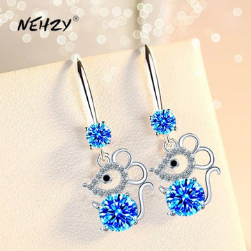 NEHZY 925 Sterling Silver New Woman Fashion Jewelry High Quality Blue Pink White Crystal Zircon Hot Selling Mouse Earrings