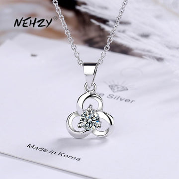 NEHZY 925 Sterling Silver New Woman Fashion Jewelry High Quality Crystal Zircon Flower Pendant Necklace Length 40+3.5CM