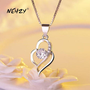 NEHZY 925 sterling silver new woman fashion jewelry high quality crystal zircon heart-shaped hollow pendant necklace length 45cm