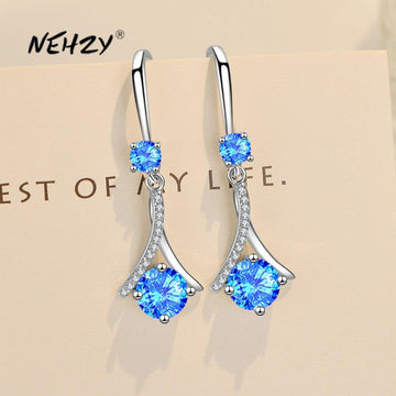 NEHZY 925 Sterling Silver New Woman Fashion Jewelry High Quality Crystal Zircon Simple Water Drop Long Tassel Hook Earrings