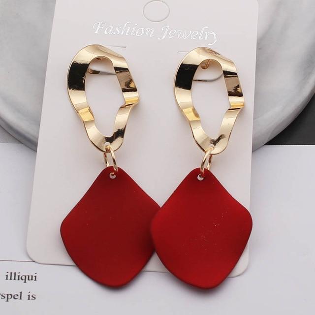 New Fashion Statement Earrings Green White Red Geometric Drop Earrings for Women Punk Metal Earring Trendy Jewelry Elegant