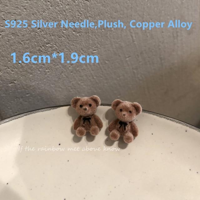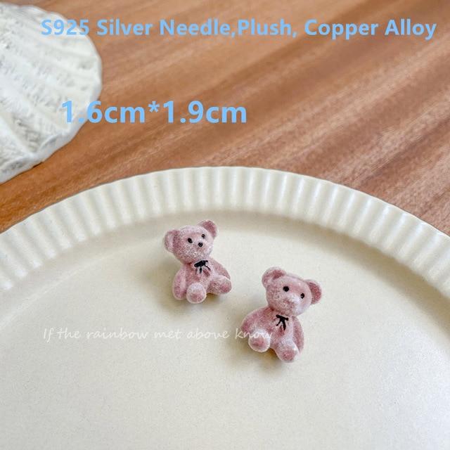 New Korean Kawaii Funny Plush Small Stud Earrings Cute Bow Bear Statement Dainty Earring Fashion Jewelry 2021 Brincos Wholesale