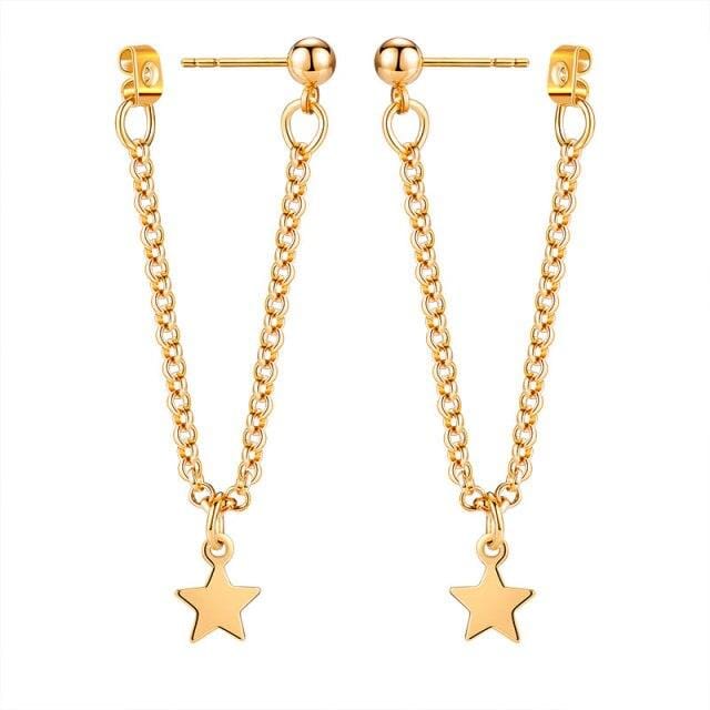 New Korean Simple Metal Long Chain Drop Earrings for Women Geometric Star Gold Colour Earings 2021 Fashion Brincos Party Jewelry