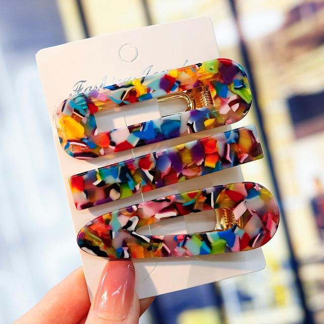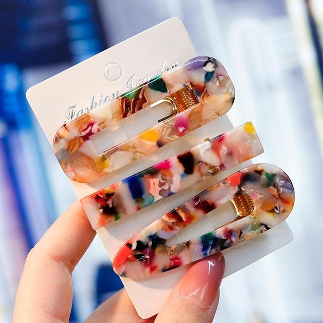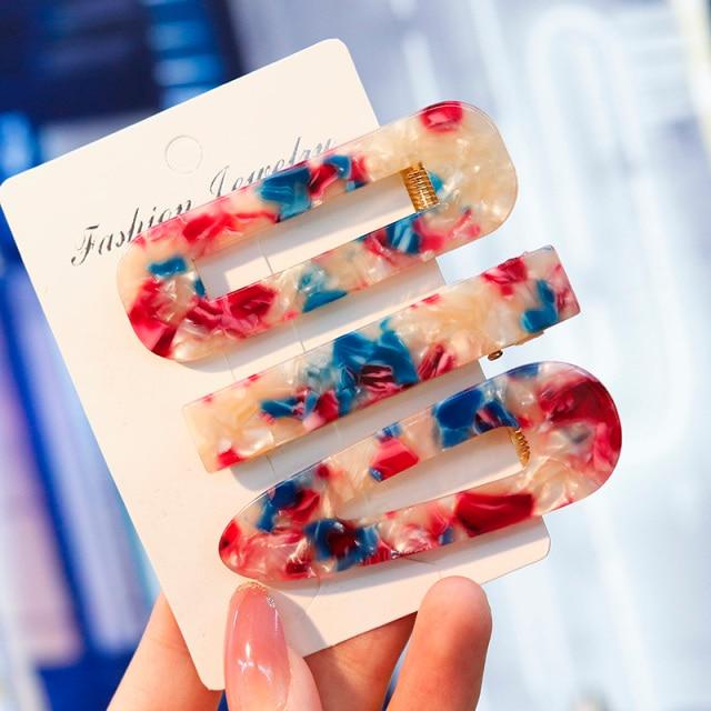 POXAM Fashion 1Set Women Girls Acrylic Geometric Hair Clips Sweet Headwear Hairpins BB Clip Styling Tools Barrettes Accessories