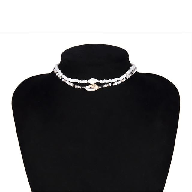 SHIXIN Separable 2 Layered White/Black Beads Necklaces Korean Small Beaded Conch Shell Choker Necklace for Women Fashion Collar