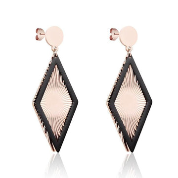 Unique Design Rose Gold Circle Hanging Rhombus Black Frame Spiral Shape Earrings Titanium Steel Dangle Earrings Engagement Gift