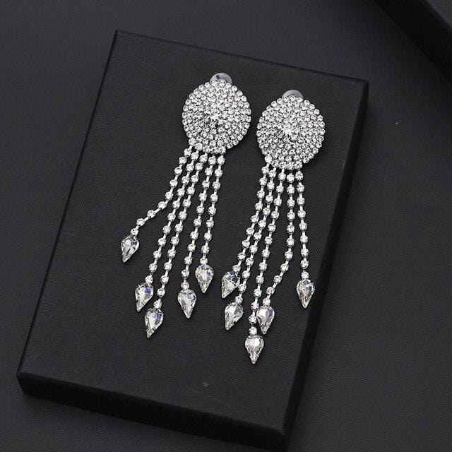 Ztech Fashion Show Lady's Shiny Rhinestone Big Long Tassel Dangle Earrings Jewelry Evening Dress Statement Earring Accessories