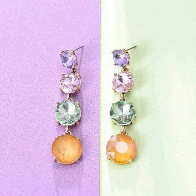 Ztech Long Round Colorful Resin Beads Pendants Fashion Earrings For Women Girls Statement Jewelry Large Rhinestone Party Earings