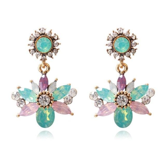 Ztech New Hot Fashion Green/Pink Color Crystal For Women Trend Maxi Wedding Jewelry Dangle Drop Ethnic Statement Earrings