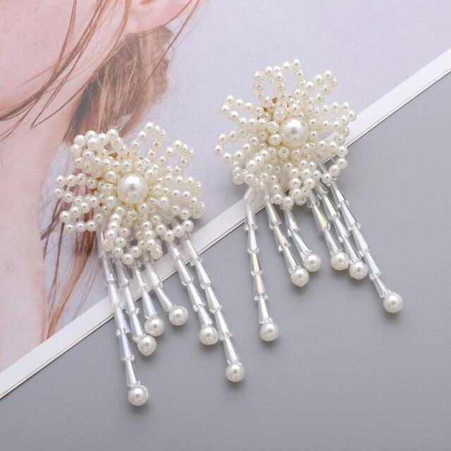 Ztech New Imitation pearl Big Long Earrings For Women Pure Handmake Fashion Style Holiday Jewelry Party Gifts Pendientes