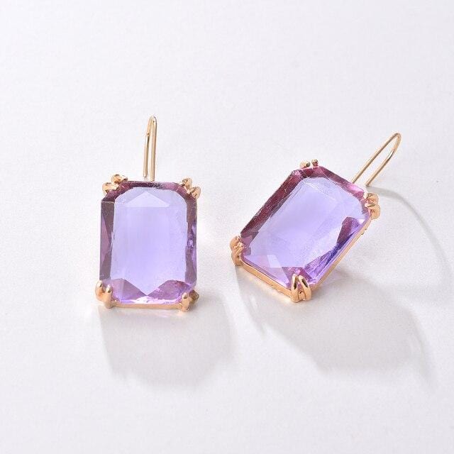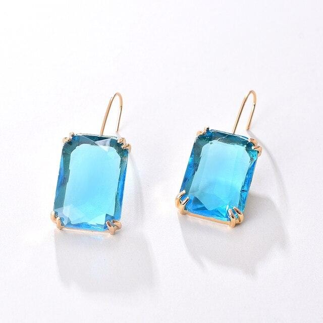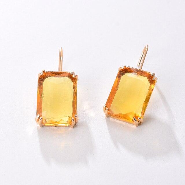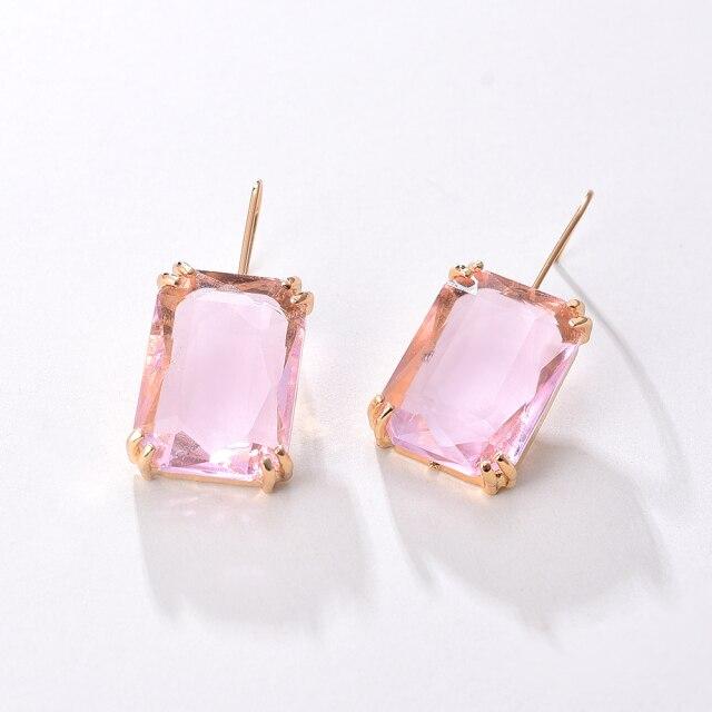 Ztech Transparent Pendant Hanging Earring For Women Bohemia Trendy Geometric Square Glass Drop Dangle Earrings Wedding Jewelry