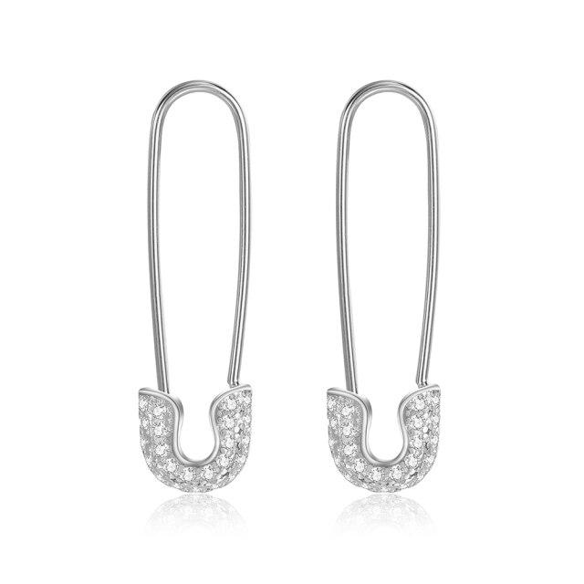 Small Safety Pin Studs 925 Sterling Silver Earrings for Women Unisex Ear Piercing Stud Earrings Zircon Fine Jewelry Gift