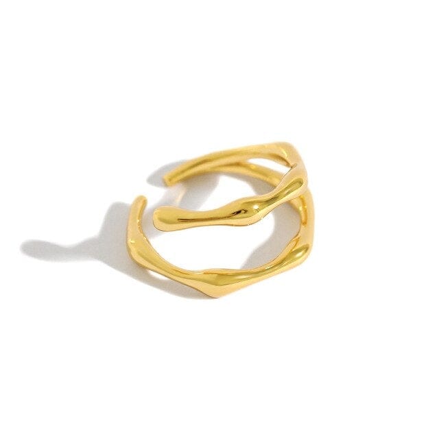 Kinel 100% 925 Sterling Silver Irregular Finger Rings for Women Adjustable Double layer Ring Wedding 18K Gold Jewelry