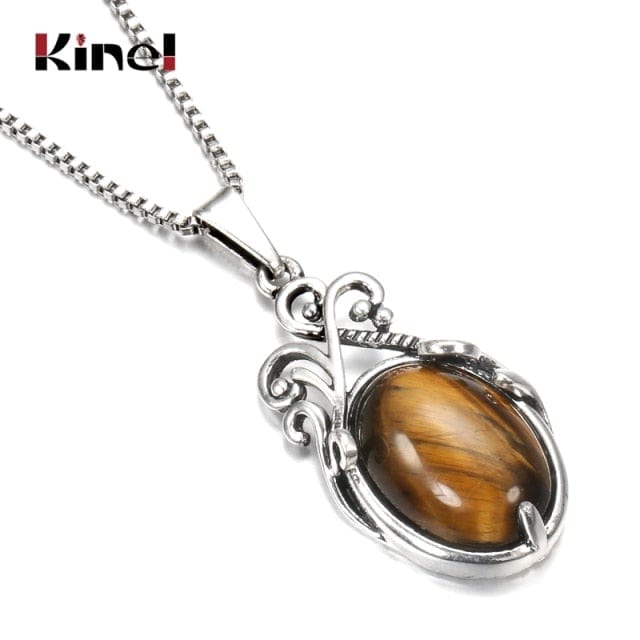 Kinel 2020 New Boho Natural Stone Necklaces Choker For Women Tibetan Silver Beach Party Indian Bride Pendant Wedding Jewelry