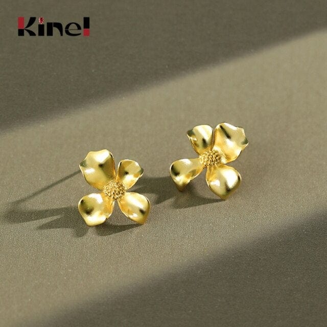 Kinel 2020 New Earrings Korean Fashion Jewelry 925 Sterling Silver 18K Gold Stud Earrings Simple Flower Female Earrings