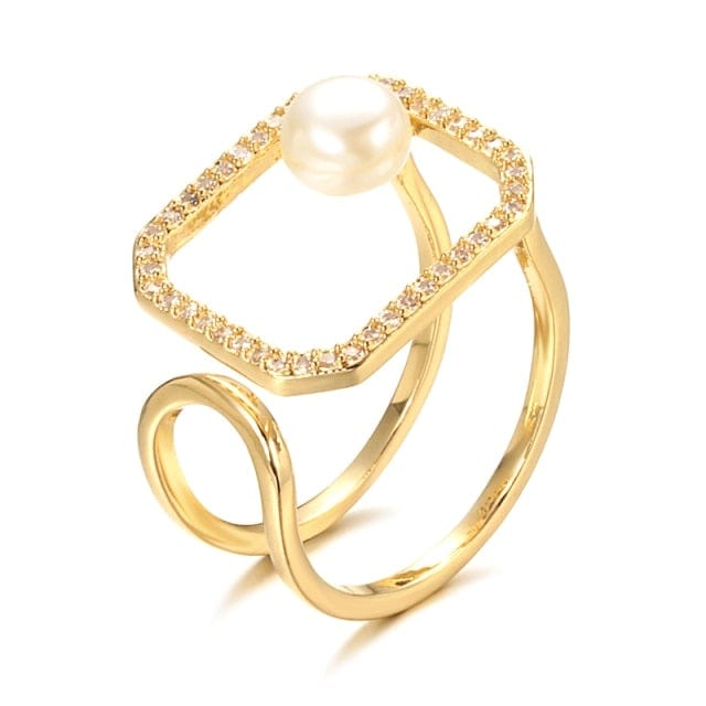 Kinel 2020 Trendy Style Zircon Open Ring Women Natural Pearl Geometric Rings Boho Ethnic Wedding Jewelry Wholesale