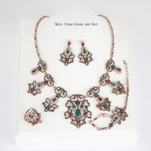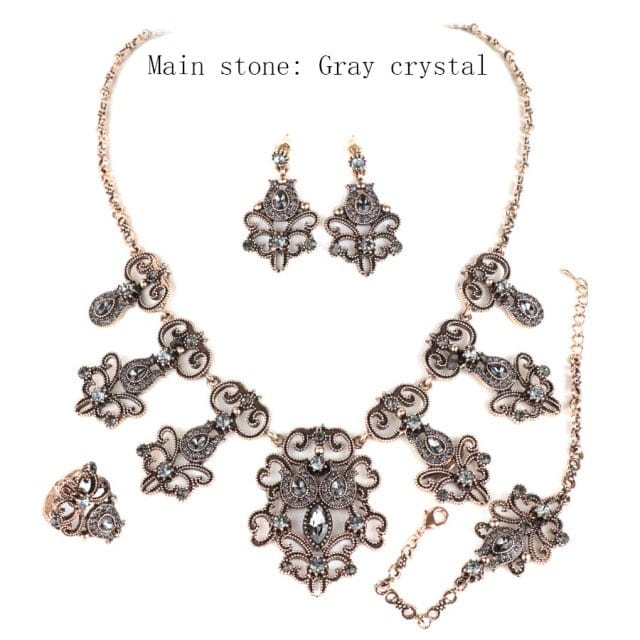 Kinel 4Pcs India Bridal Wedding Jewelry Sets Antique Gold Turkey Gray Crystal Flower Earring Necklace Bracelet Ring For Women