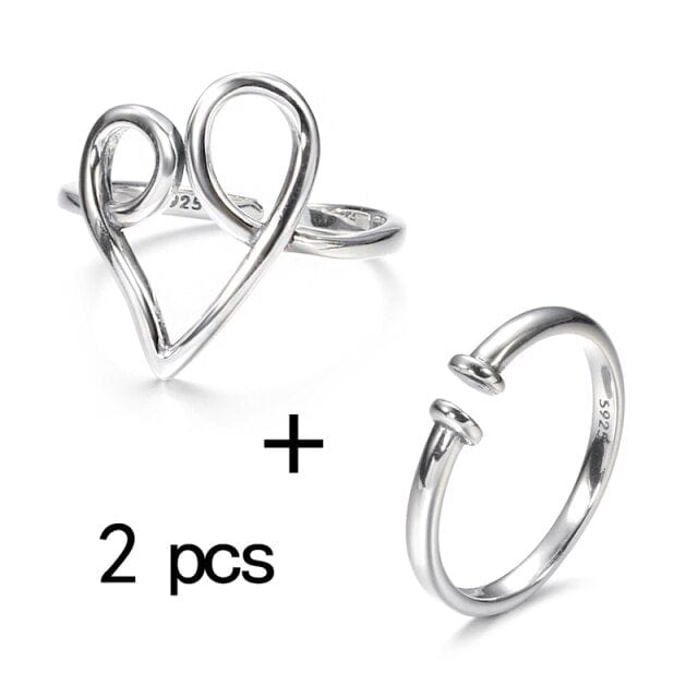 Kinel 925 Sterling Silver Bijoux Finger Ring Minimalism Heart Rings for Women Boho Beach Party 925 Silver Wedding Jewelry
